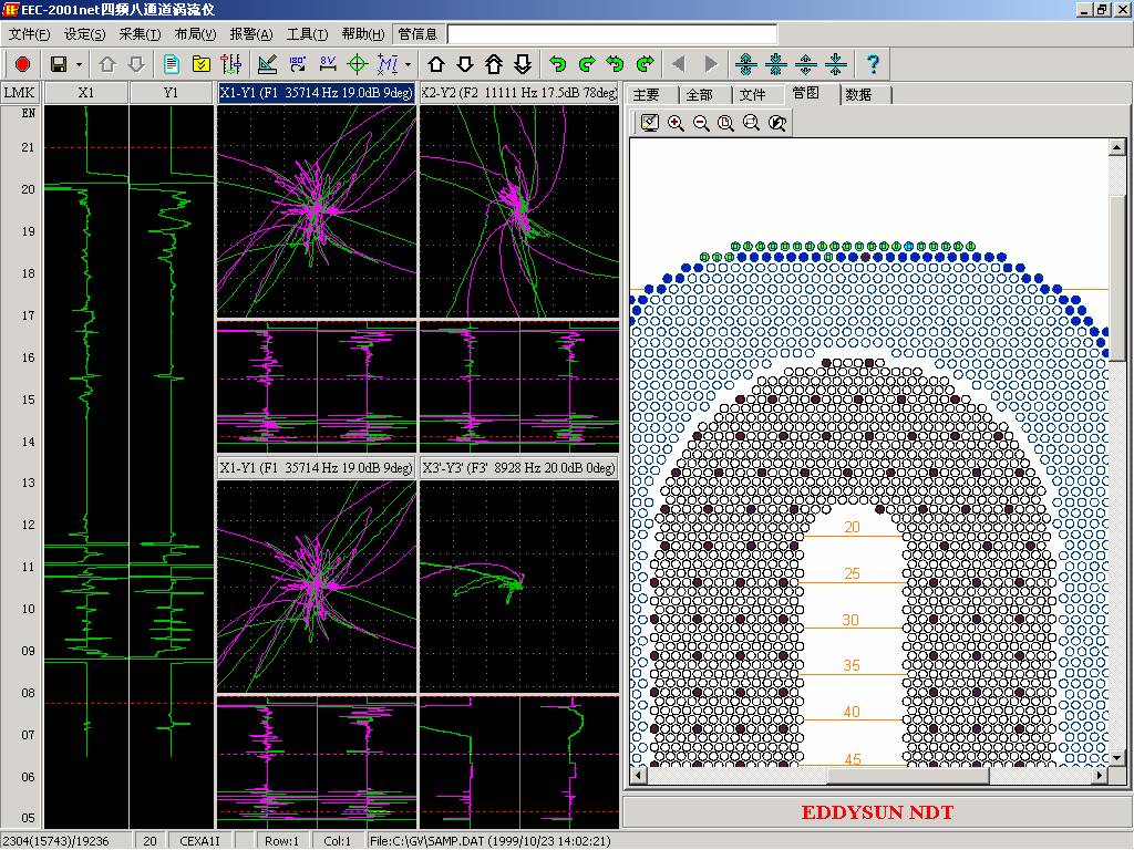 EEC-2001NET 整套软件是以数据库、设备图为核心,与智能多频多通道涡流仪配套使用的系统软件,它实现了对涡流检测全过程的数字化、网络化信息管理。大大提高了检测效率和检测的计划性、可靠性和准确性,为促进涡流检测的现代化管理提供了有效的技术支撑。