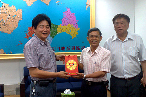 | 根据日程安排,会议结束后在金门大学和台湾同仁的陪同下,应李沃士县长邀请到金门县府参访,受到吴副县长和县府公务局领导的热情接待(李县长因奉召临时赴台北参会,委托吴副县长接待)。吴副县长代表县府发表热情洋溢的讲话,首先对高峰论坛在金门召开表示全力支持,同时指出,高峰论坛在金门举行将大大提高金门的知名度和对经济建设带来推动。接着吴副县长介绍金门的区位优势、人文景观和建设规划。尔后表示,李沃士县长在无特殊公务的情况下,一定参加高峰论坛闭幕式,临别时向代表团赠送有李沃士县长署名的纪念品。 |