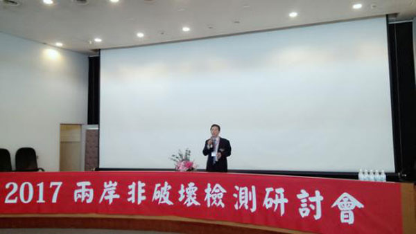 为促进海峡两岸非破坏检测技术交流及人才互动, 2017两岸非破坏检测研讨会于2017年9月20日至9月22日在台北市福华文教国际会馆举行,共有海峡两岸100余位无损检测界代表参会,其中大陆方面代表十余位。大会主席暨台湾非破坏检测协会董事长江支弘主持开幕式并致辞;大陆方面,中国无损检测学会秘书长徐永昌致辞;中国无损检测学会副理事长、爱德森(厦门)电子有限公司福建省院士专家工作站站长林俊明研究员作了“从检测到监测--在用管道安全检监测技术的发展及应用”的主题报告。